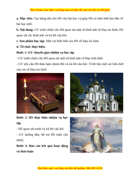 b. Nội dung: GV trình chiếu cho HS quan sát một số hình ảnh về Đạo tin lành; HS