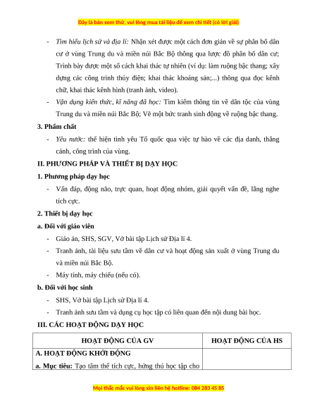 - Kể được tên một số dân tộc sinh sống ở vùng Trung du và miền núi Bắc Bộ. b. Các tiến hành
