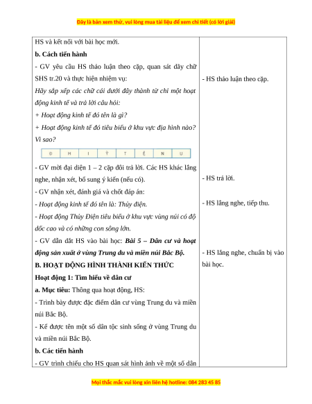 Giáo án Bài 5 Lịch sử & Địa lí lớp 4 Chân trời sáng tạo: Dân cư và hoạt động sản xuất ở vùng trung du và miền núi Bắc Bộ