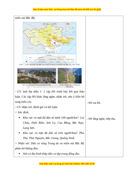 miền núi Bắc Bộ thông qua lược đồ phân bố dân cư.