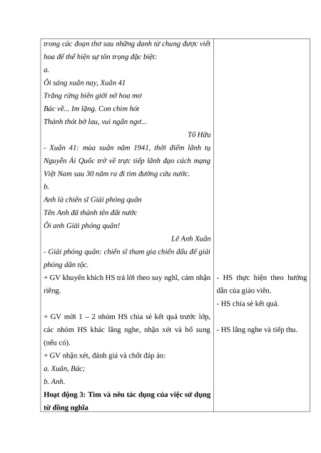 * Tùy thuộc vào năng lực HS, GV có thể tách hoặc ghép