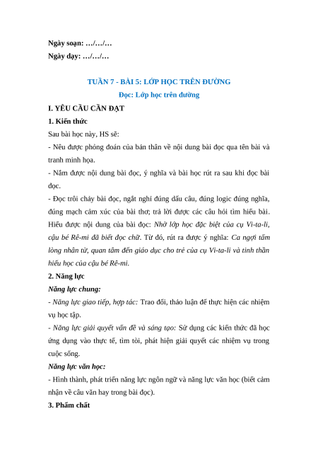 TUẦN 7 - BÀI 5: LỚP HỌC TRÊN ĐƯỜNG