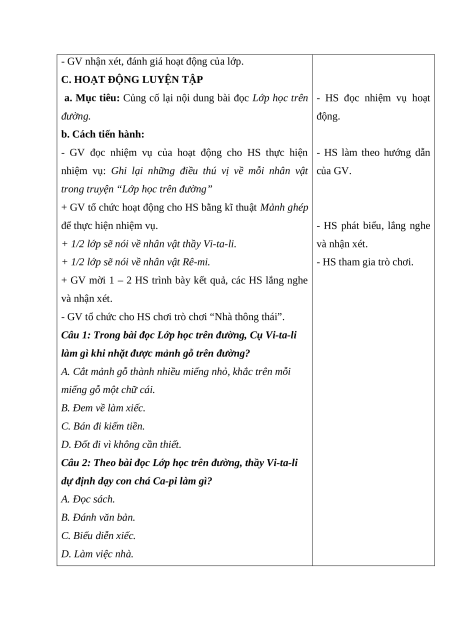 Hiểu được nội dung của bài đọc: Nhờ lớp học đặc biệt của cụ Vi-ta-li,