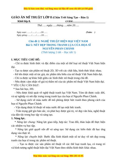 GIÁO ÁN MĨ THUẬT LỚP 8 (Chân Trời Sáng Tạo – Bản 1)