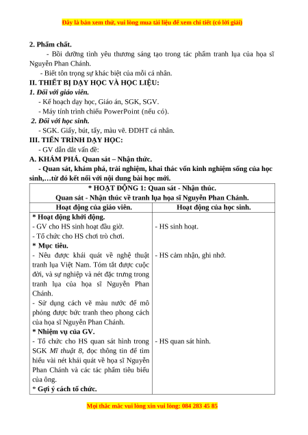 - Nêu được khái quát về nghệ thuật tranh lụa Việt Nam. Tóm tắt được cuộc đời,