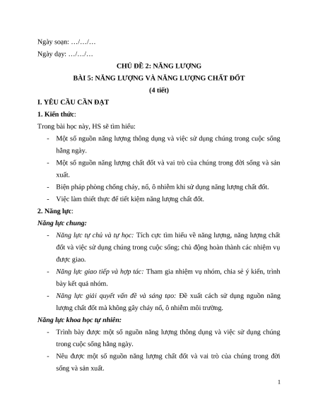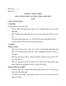 BÀI 5: NĂNG LƯỢNG VÀ NĂNG LƯỢNG CHẤT ĐỐT (4 tiết)