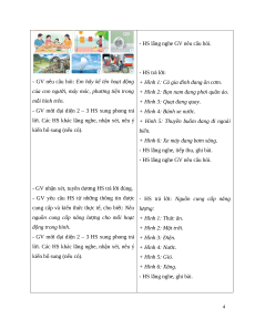 lời. Các HS khác lắng nghe, nhận xét, nêu ý + Hình 4: Nước.