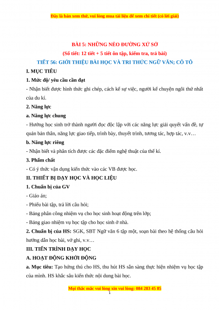 TIẾT 56: GIỚI THIỆU BÀI HỌC VÀ TRI THỨC NGỮ VĂN; CÔ TÔ