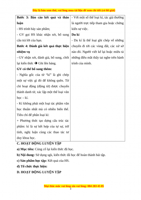 Bước 3: Báo cáo kết quả và thảo - Với một số thể loại kí, tác giả thường luận