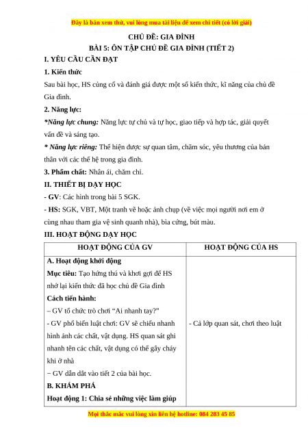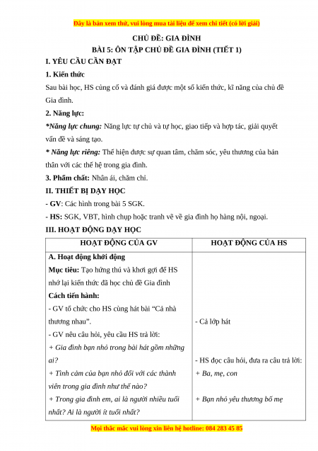 BÀI 5: ÔN TẬP CHỦ ĐỀ GIA ĐÌNH (TIẾT 1)