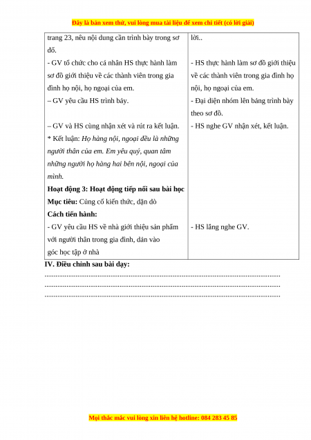 - HS: SGK, VBT, hình chụp hoặc tranh vẽ về gia đình họ hàng nội, ngoại.