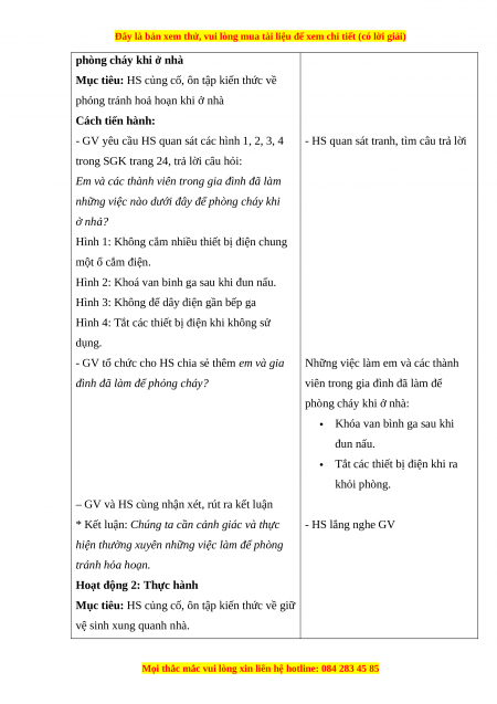 những việc nào dưới đây để phòng cháy khi