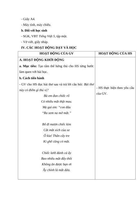 b. Đối với học sinh - SGK Tiếng Việt 5.