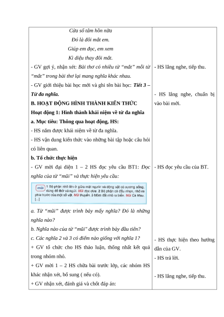 * Tùy thuộc vào năng lực HS, GV có thể tách hoặc ghép