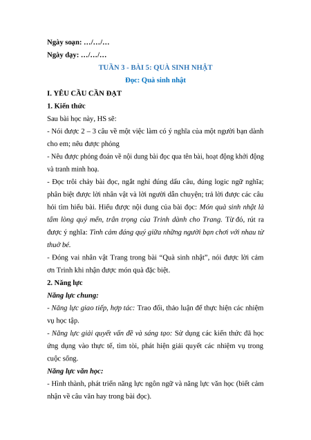 Giáo án Bài 5: Quà sinh nhật Tiếng Việt lớp 5 Chân trời sáng tạo