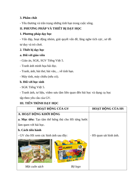 II. PHƯƠNG PHÁP VÀ THIẾT BỊ DẠY HỌC