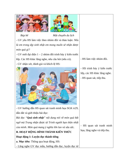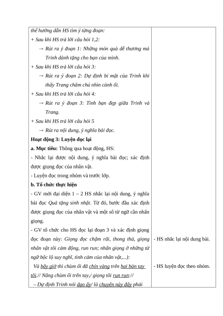 hỏi tìm hiểu bài. Hiểu được nội dung của bài đọc: Món quà sinh nhật là