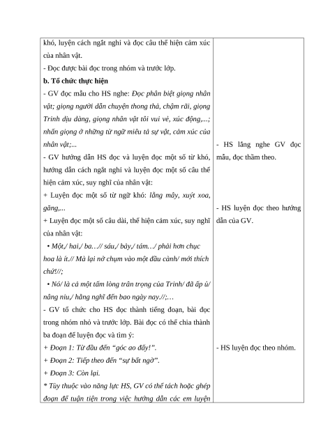 khó, luyện cách ngắt nghỉ và đọc câu thể hiện cảm xúc của nhân vật.