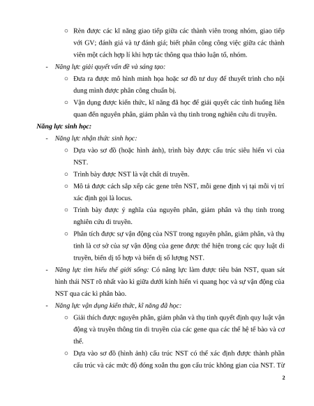- Năng lực tìm hiểu thế giới sống: Có năng lực làm được tiêu bản NST, quan sát