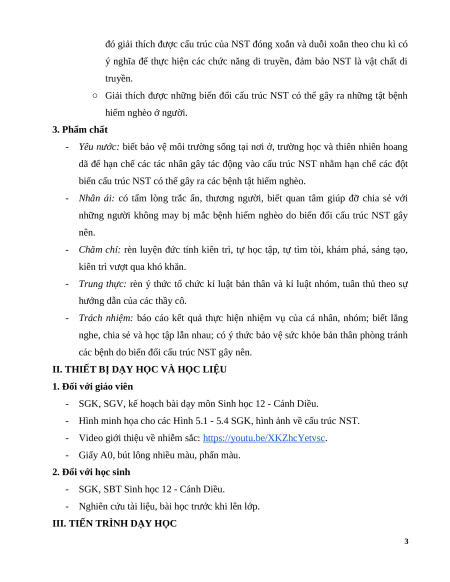 ○ Giải thích được những biến đổi cấu trúc NST có thể gây ra những tật bệnh hiểm nghèo ở người. 3. Phẩm chất
