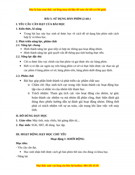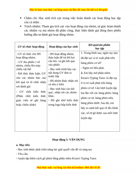 Giáo án Bài 5: Sử dụng bàn phím Tin học 3 Kết nối tri thức