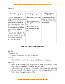 Hoạt động 2: BÀN PHÍM MÁY TÍNH Mục tiêu: - Yêu cầu cần đạt.