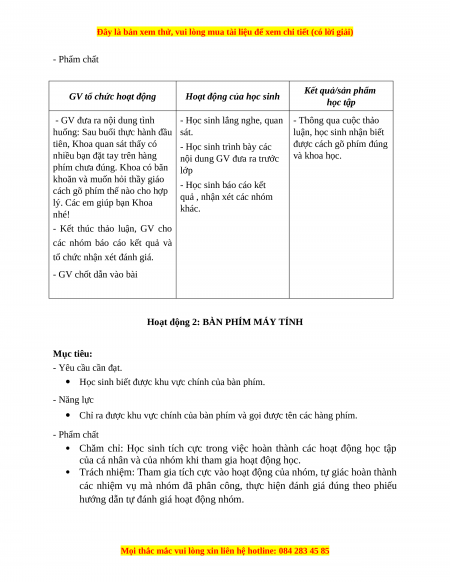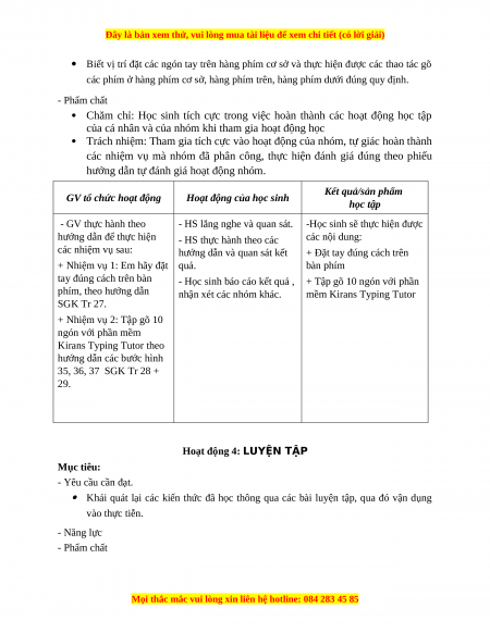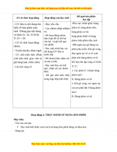 phím phụ trách. Khi gõ xong, nội dung GV đưa ra