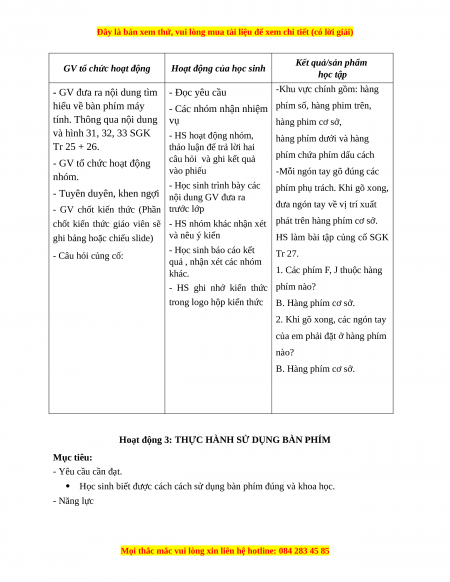 Hoạt động 3: THỰC HÀNH SỬ DỤNG BÀN PHÍM Mục tiêu: - Yêu cầu cần đạt.