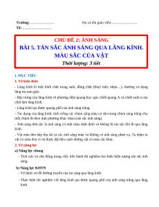 Giáo án Bài 5: Tán sắc ánh sáng qua lăng kính. Màu sắc của vật Khoa học tự nhiên 9 Chân trời sáng tạo