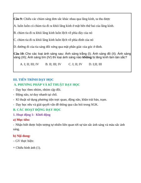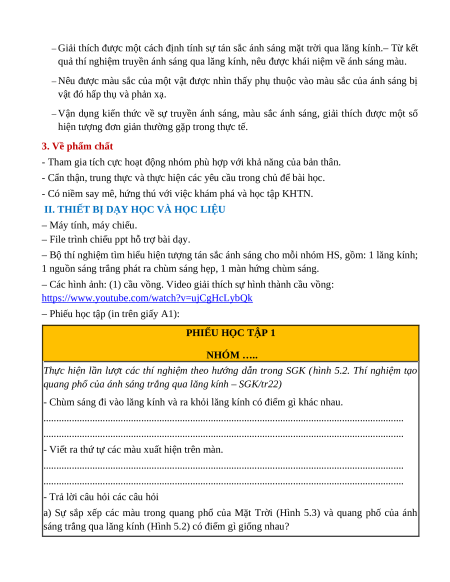 – Tích cực và chủ động trong việc tiến hành thí nghiệm tìm hiểu hiện tượng tán sắc ánh sáng. b) Năng lực KHTN
