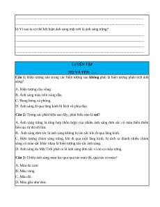 Câu 1: Hiện tượng nào trong các hiện tượng sau không phải là hiện tượng phân tích ánh sáng?