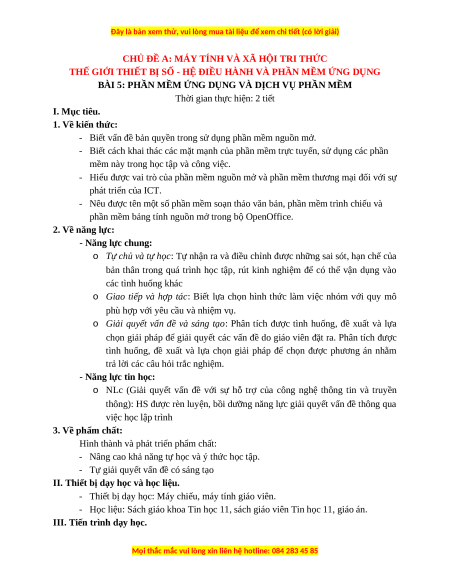 - Thiết bị dạy học: Máy chiếu, máy tính giáo viên.