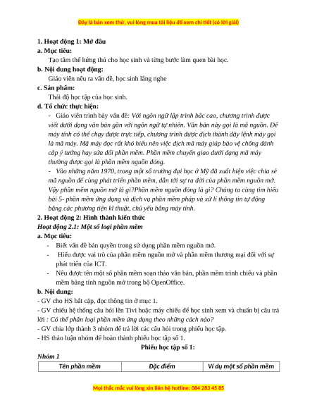 1. Hoạt động 1: Mở đầu a. Mục tiêu: