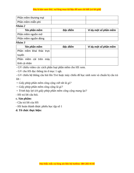 + Trình bày lợi ích giấy phép phần mềm công cộng mang lại? - HS trả lời câu hỏi. c. Sản phẩm: