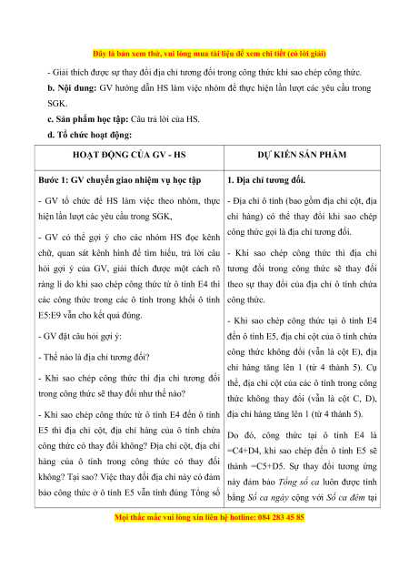 Giáo án Bài 5 Tin học 8 Chân trời sáng tạo: Sử dụng địa chỉ tương đối, tuyệt đối trong công thức