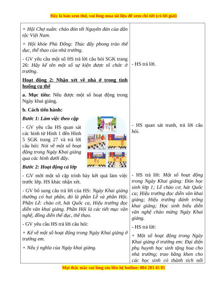 a. Mục tiêu: Nêu được một số hoạt động trong Ngày khai giảng. b. Cách tiến hành: