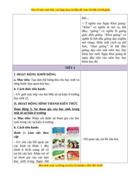 - Nêu được tên, ý nghĩa và các hoạt động của một đến hai sự kiện thường được tổ chức ở trường.
