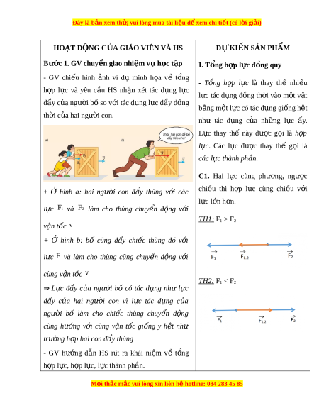 Đây là bản xem th , vu ử i lòng mua tài li u ệ đ xe ể m chi ti t (c ế ó l i ờ gi i ả ) HOẠT Đ N Ộ G C A Ủ GIÁO VIÊN VÀ HS D K Ự IẾN SẢN PH M Ẩ Bư c ớ 1. GV chuy n gi ể ao nhi m ệ v h ụ c t ọ p ậ I. T ng h ổ p ợ l c đ ự ng quy ồ - GV chi u ế hình nh ả ví dụ minh h a ọ về t ng ổ - Tổng h p ợ l c