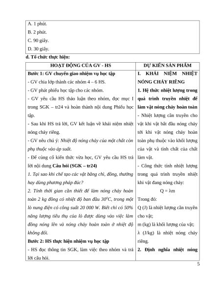 phiếu học tập, nêu định nghĩa và biểu thức tính nhiệt nóng chảy riêng. c. Sản phẩm: