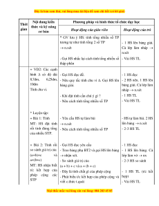 - Nhận biết tính chất kết hợp của phép cộng các số TP và biết vận dụng các tính