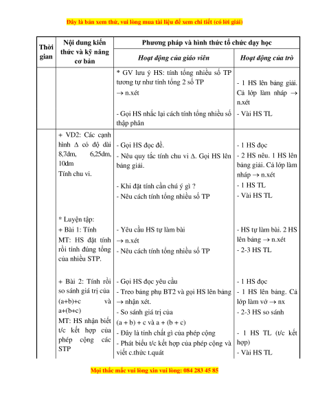 Giáo án Bài 50 Toán lớp 5: Tổng nhiều số thập phân