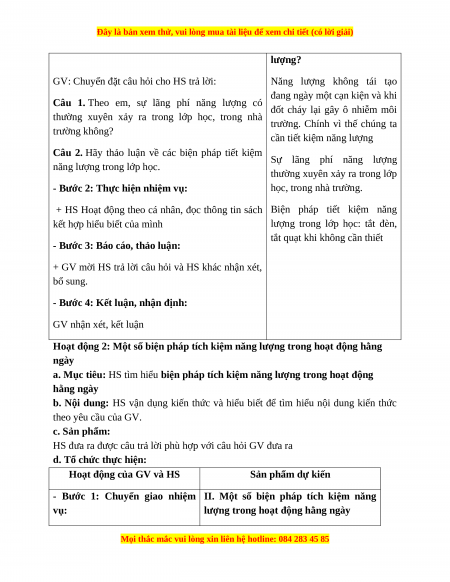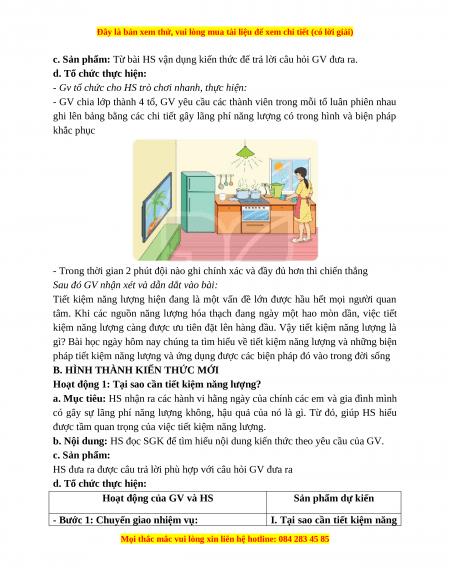 a. Mục tiêu: HS tìm hiểu biện pháp tích kiệm năng lượng trong hoạt động hằng ngày
