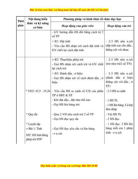 1. Kiến thức: Tìm hiểu quy tắc trừ STP. 2. Kĩ năng: