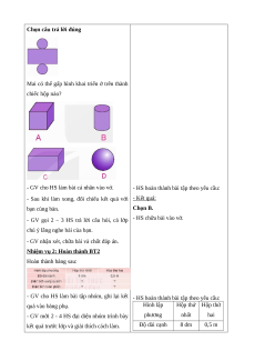 - GV cho HS làm bài tập nhóm, ghi lại kết - HS hoàn thành bài tập theo yêu cầu: quả vào bảng phụ. Hình lập Hộp thứ Hộp thứ
