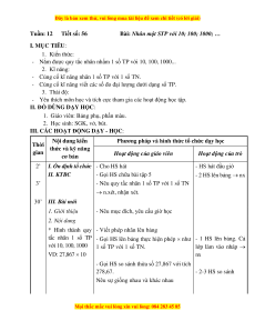 Tuần: 12 Tiết số: 56 Bài: Nhân một STP với 10; 100; 1000; …
