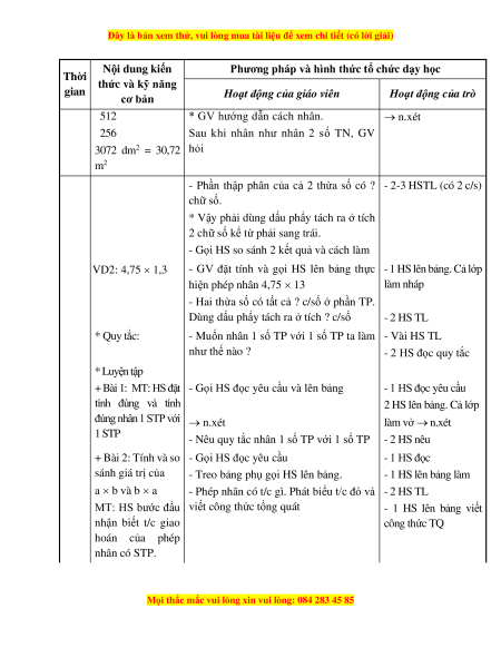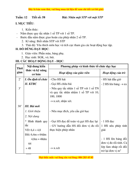 Giáo án Bài 58 Toán lớp 5: Nhân một số thập phân với một số thập phân