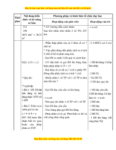 - GV hướng dẫn HS đổi đơn vị đo rồi 1 HS nêu phép tính VD: 6,4 4,8 thực hiện phép nhân giải Đổi: 6,4m = 64dm 4,8m = 48dm - 1 HS lên bảng đổi 64