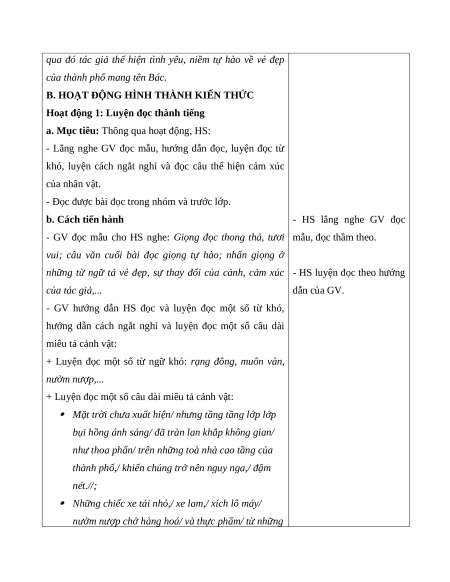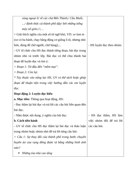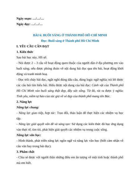 Giáo án Bài 6: Buổi sáng ở Thành phố Hồ Chí Minh Tiếng Việt lớp 5 Chân trời sáng tạo