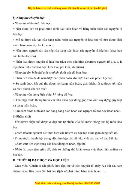 dựa theo tính chất hoá học: kim loại, phi kim, khí hiếm). 2) Năng lực