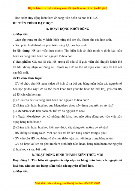 - GV sơ lược lại lịch sử phát minh ra định luật tuần hoàn, bảng tuần hoàn các nguyên